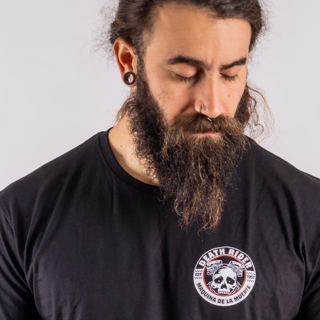 El verdadero encanto de la camiseta “Máquina de la Muerte” reside en su diseño exclusivo. En su núcleo se encuentra una calavera meticulosamente detallada, un símbolo icónico del universo de los motociclistas, que encarna su valentía y resistencia. Las calaveras y esqueletos recuerdan la muerte y también actúan como un recordatorio para vivir cada momento con determinación inquebrantable, abrazando la emoción de lo desconocido en cada viaje.