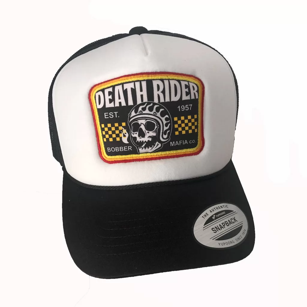 Con su atrevido diseño de alta calidad y el poderoso bordado de Death Rider en la parte delantera, esta gorra es la protagonista perfecta. En Death Rider prestamos una atención extrema a los detalles. Esta gorra no es una excepción. La gorra Trucker Death Rider Bobber Mafia es un artículo de verdadera calidad.