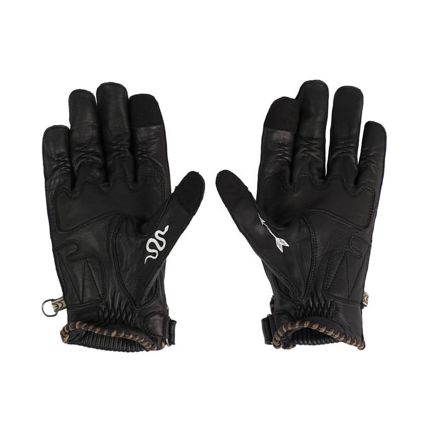 La piel de primera calidad, seleccionada por su suavidad y resistencia, se combina con remates cosidos a mano que evocan la tradición y la artesanía del motociclismo clásico. El diseño vintage se fusiona con un toque rockero, creando un accesorio único que refleja la personalidad del biker. El doble ajuste en la muñeca mediante un botón metálico no solo asegura un ajuste perfecto, sino que también añade un detalle distintivo que realza el estilo vintage de los guantes.